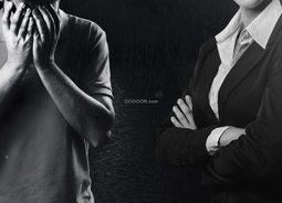 男人用双手捂着脸颊显着身沮丧女上士确是自信满满形成鲜明的对比人物素材设计