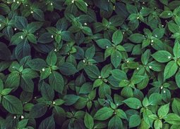 一株株绿色的植物叶子聚集在一起配合着白色的小花植物素材设计清新自然