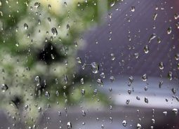 大雨过后透明的雨滴残留在透明玻璃上模糊了外面的视线自然风景素材设计