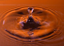 一滴晶莹剔透的水滴在滴落在水面的水煎与水面粘接在一起科学技术素材设计
