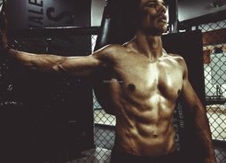 高清特写一位黄皮肤外国男士在健身房内身上的肌肉线条十分清晰体育运动素材设计