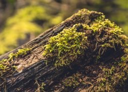 破败古老的树干上面长满了绿色的苔藓富有生机植物素材设计