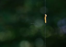 高清特写一只毛毛虫挂在一条细细的丝线上面不断的往上爬动物素材设计