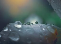 清晨时分盛开紫罗兰上面有一个和球状的晶莹剔透的水滴自然风景素材设计