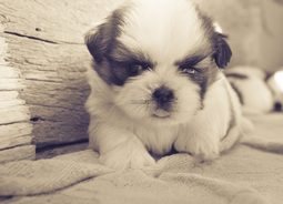 创意拍摄一只小狗洒在沙发上盯着镜头表情搞笑动物素材设计