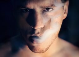 一位年轻帅气的男士面容英俊嘴里吐着烟雾人物素材设计