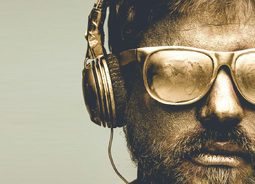 一位潮流男士不修边幅带着耳麦和炫酷的墨镜影视音乐素材设计