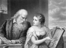 一男一女两个人对着一幅原子弹爆炸的画面讨论人物素材设计