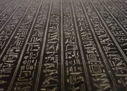 黑色的硬板上面整齐的刻着象形文字科学技术素材设计
