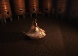 一位新娘穿着洁白的婚纱在舞台中心拍摄照片人物素材设计