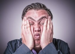 一个胖乎乎的男士双手护着脸部做出一个可爱的鬼脸人物素材设计