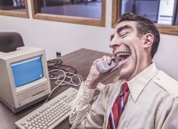 电话接听员正在接听着电话表情搞怪人物素材设计