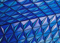 蓝色的立体几何拼接而成的建筑晶莹剔透