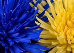 电脑设计两朵黄色与蓝色的盛开的菊花植物素材设计