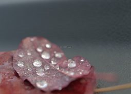 几片飘落的红色枫叶上面有几滴晶莹剔透的水滴自然风景素材设计