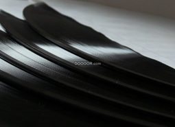 产业技术素材设计一个个老式黑色磁盘叠放在一起阳光照在上面反射出白色的光