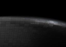 黑暗的氛围下有一座由条形方块拼接形成的弧形建筑质感感十足建筑素材设计