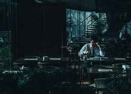 一位衣着干净整洁的男士坐在舒适明亮的大厅内办公商业金融素材设计