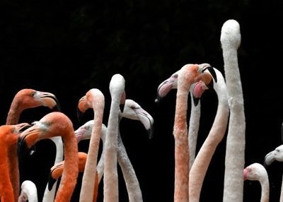 动物园里火烈鸟伸着红色的长长的脖子聚集在一起动物素材设计