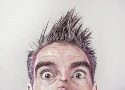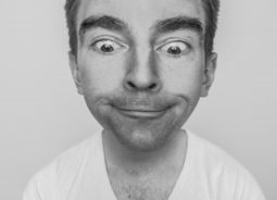 一位男士抿着嘴眼睛瞪着前方表情十分搞怪人物素材设计