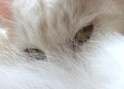 一只白色的狐狸头部隐藏在尾巴里面狡黠的眼神盯着前方动物素材设计