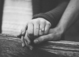 一对恋人的手上戴着钻石戒指紧紧扣在一起