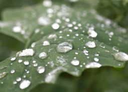 雨水过后宽阔的植物叶面上残存着一滴滴晶莹剔透的小水珠植物素材设计