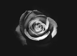 漆黑的氛围下阳光照射在一朵绽放的白色玫瑰上面植物素材设计