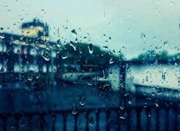 天气素材设计阴沉沉的天空雨水滴落在橱窗上留下一颗颗晶莹的水珠