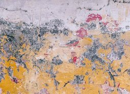 年久失修的墙皮脱落而下露出本来的颜色一道道裂纹随机分布在其中