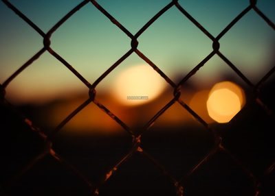 傍晚时分透过铁丝栅栏看到天边一片昏黄灯光亦是如此背景花纹素材设计