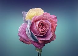 电脑设计一朵多彩盛开的玫瑰花上面残存着晶莹剔透的水滴植物素材设计