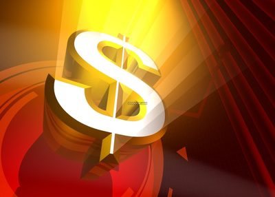 红色背景下高清特写三维立体的金色的美元符号散发出一道道金黄色的光柱商业金融素材设计