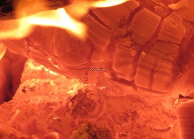 高清拍摄燃着的炭火散发着火红的光以及木炭上的一道道红色的裂纹背景花纹素材设计