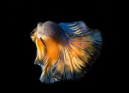 一条美丽的热带观赏锦鲤尾巴像一把巨大的蒲扇动物素材设计