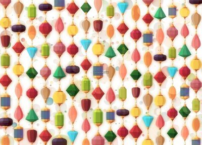 多彩的不同形状的宝石吊坠拼接形成的帘幕背景花纹素材设计