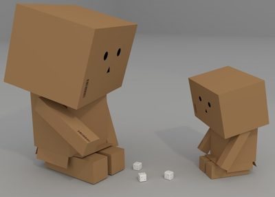 两个黄色卡通玩偶盒子小人对坐着表情可爱背景花纹素材设计