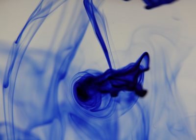 泼墨艺术作品蓝色的油墨在纸面上仿佛在空中旋转跳跃背景花纹素材设计