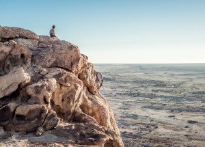 户外冒险的独步旅行者在悬崖边眺望大自然