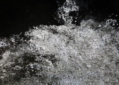 漆黑的氛围下清澈的河水奔流不息晶莹剔透的水花四处迸溅自然风景素材设计