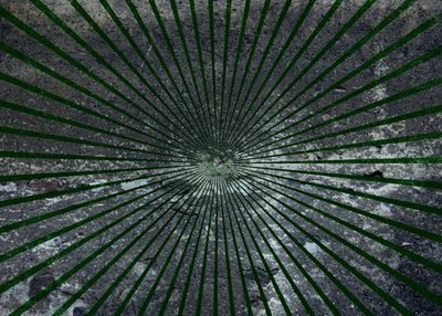 灰色的石墙上面画着一幅向外均匀辐射的绿色彩带背景花纹素材设计