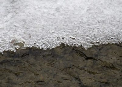 初春时节冰层逐渐融化薄薄的冰层下面河水流动自然风景素材设计