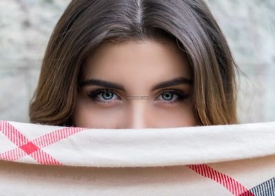 美妆时尚素材设计一位知性性感的国外美女划着淡淡的眼妆用围巾遮住半边面庞