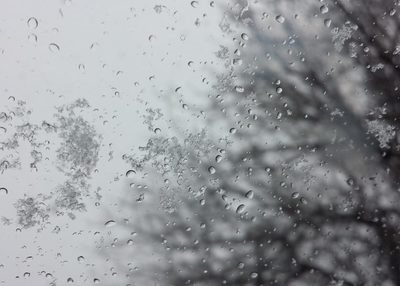 乌蒙蒙的天空下雪花飘落在窗子上转瞬就融化成小水珠自然风景素材设计