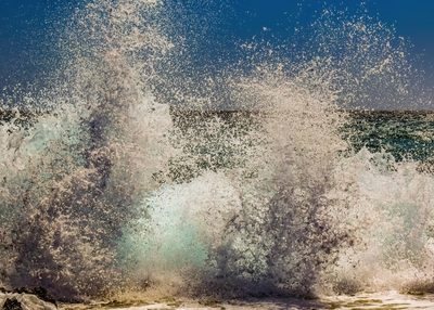 高清特写巨浪撞击岸边的礁石激起的洁白的浪花自然风景素材设计