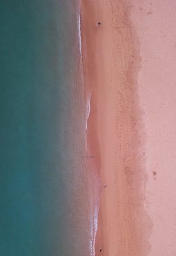 海边素材设计高空俯拍海水清澈透明岸边的沙子在海水的冲击下形成一道鲜明的痕迹