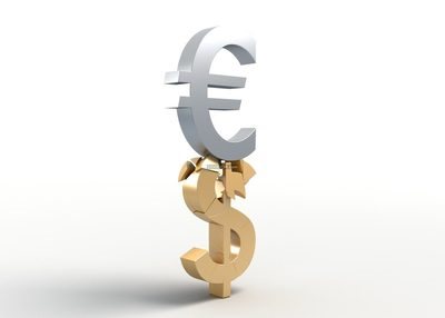 设计两个代表着不同币种的符号相互挤压象征着国家之间财政的博弈商业金融素材