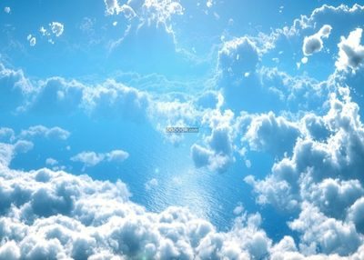 在茫茫的云海之上是湛蓝的天空阳光直射而下把一朵朵云彩照的通透明亮自然风景素材设计