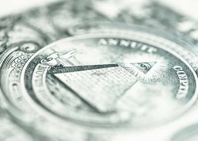 特写美元钞票上的图案有一只眼睛炯炯有神商业金融素材设计