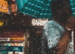 阴雨天橱窗模糊了外面的视线背景花纹素材设计